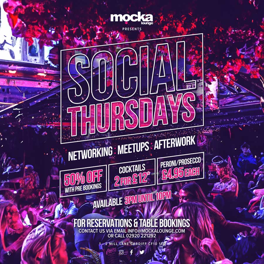 Don’t miss out on this fantastic weekly event—prebook now and secure your spot for an evening of great drinks and even better company. Social Thursdays at Mocka Lounge: where Cardiff comes to mingle.