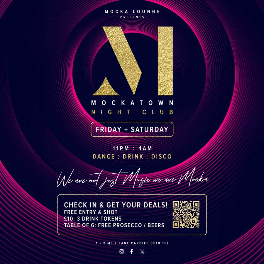 Kickstart your weekends with MockaTown Fridays at Mocka Lounge, Cardiff’s ultimate nightlife experience. Running from 9pm to 4am, this high-energy event is designed to make your Fridays unforgettable. Whether you’re a local or just visiting, immerse yourself in the vibrant atmosphere where “we are not just music, we are Mocka.”